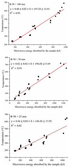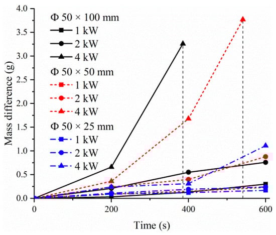 - microwave heating of rock samples of different sizes has different heating effects. Under the same heating conditions, the mass difference and temperature increase range of φ 50 × 100 mm and φ 50 × 50 mm samples are larger than that of φ 50 × 25 mm samples;