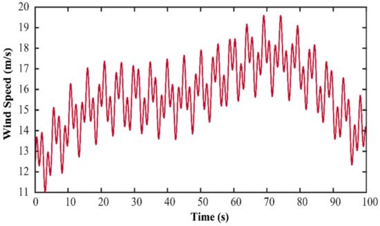 The WT power is influenced by the chaotic and fluctuating wind speed. It is changing continuously. The magnitude of wind speed is random over any interval. For this study, the simulated wind speed is defined by the following Equation (11) [30].