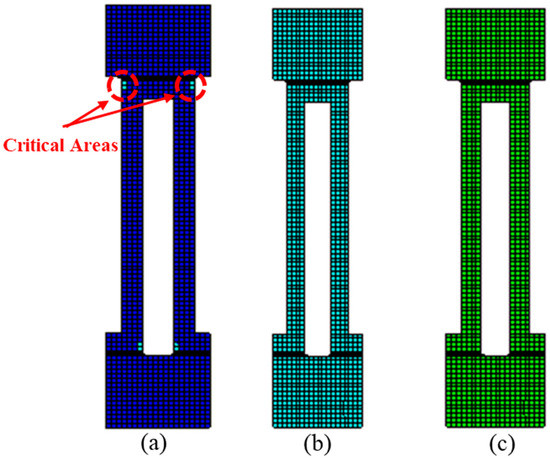 First, global stresses are presented, which shows that critical stresses in braze joints are observed on the edges of the brazed joints. So, for the reliability of the PFHE, these stresses need to be calculated locally. These global stresses consist of equivalent, normal, and shear stress, as shown in Figure 5a–c, respectively.