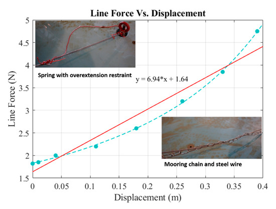 Best-fit approximation of the spring constant of the designed mooring lines.