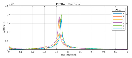 Fast Fourier transform (FFT) of free decay of heave motion for all phases of testing.