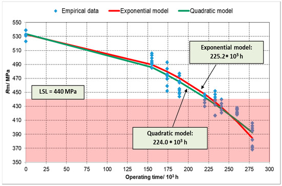 may be useful, because both these models describe the course of the Rm value depending on the operating time of an elbow bend of a steam pipeline in a highly statistically significant way (p(α) < 0.05).