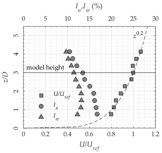 Measurements have been taken to assure a good assessment of the turbulence intensity. The velocity components on the vertical plane u and w have been measured in the x and z directions, respectively, for z > zmin. Surface pressure measurements have also been performed using 64 pressure taps on the rooftop and on the sides of the building models. More details about the wind tunnel tests are reported in detail in [30] and are not further discussed in this work.