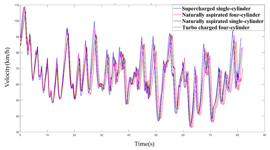 The simulation results and the normalised scores are shown in Table 5. The results show that the configuration proposed in this study is the best in the acceleration, autocross and endurance events (Figure 8 shows the single-lap speed curve of the four configurations in endurance) and ranks the second in the ski-pad, which does not depend on power performance. The normalised scoring according to the Formula Student rules indicates that the 1-cylinder supercharged engine has the highest overall score.
