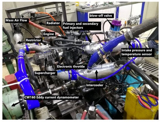 According to the technical rules, if an intercooler is installed, it must be arranged downstream of the throttle. Therefore, this study arranged the primary injector downstream of the throttle and the secondary injector upstream of the throttle to reduce the intake air temperature by fuel vaporisation. Moreover, no intercooler was provided, and the throttle was directly installed near the cylinder head. Consequently, the volume of the intake system behind the throttle can only be approximately 200 mL, further improving the torque response capability.