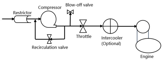 Therefore, this study used a supercharging system. Although a supercharged engine provides great power, it can provide a stable pressure ratio in the full range of engine conditions, and the boost pressure is established rapidly, which is conducive to achieving the ideal instantaneous torque response.