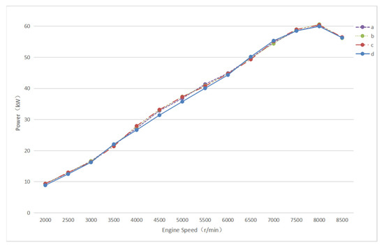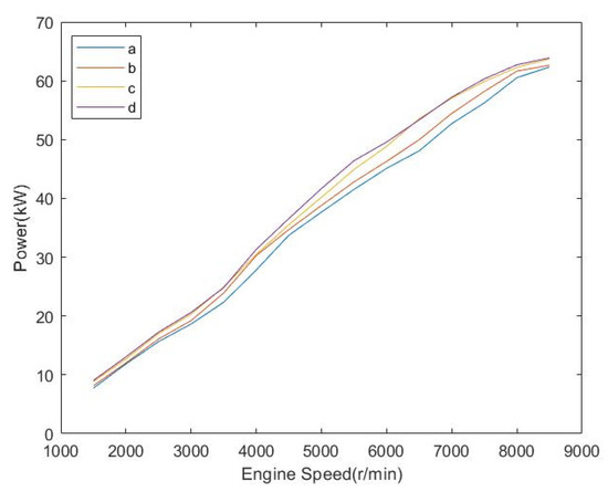 Currently, the four-cylinder naturally aspirated engine is the common form of power in the competition. Lawrence Technological University Formula SAE (FSAE) team adopted the Honda CBR600 F3 engine. They redesigned the shape of the throttle plate, improved the restrictor and optimised the intake manifold to make the intake flow of each cylinder as even as possible and ultimately to increase the engine torque by 30% to 50 Nm@8500 rpm. The maximum power is 48 kW@11,000 rpm [5]. Otherwise, in terms of naturally aspirated engines, adopting the variable intake manifold can effectively improve the engine power performance. What is worth mentioning is that the Cooper Union Formula SAE (FSAE) team adopted the Suzuki GSXR-600 engine and adjusted the runner through the control mechanism in different engine conditions, which could change the length of the air intake’s flow pass from 216 mm to 325 mm and eventually improve the peak power by more than 22% and increase the output torque by 5% [6]. Besides, optimising the intake manifold, changing the camshaft to change the timing distribution system and other ways can improve the engine power performance [7,8,9].