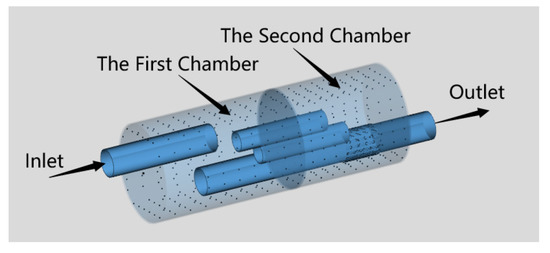 - The outlet tube in the second chamber is perforated.