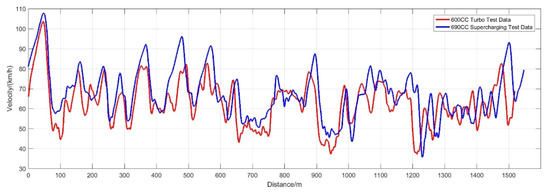 On a dry and well-adhered track (shown in Figure 49), the Gspeed-2018 racecar with the new-generation engine and the Gspeed-2017 racecar with the previous turbocharged 4-cylinder engine were tested and compared. The two racecars used similar chassis and aerodynamic settings and were driven by the same experienced driver. The test results are shown in Table 13, and the speed curve of the fastest lap is shown in Figure 50.