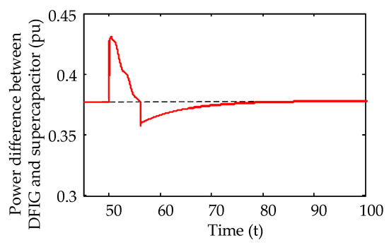 Power difference between the DFIG and supercapacitor.