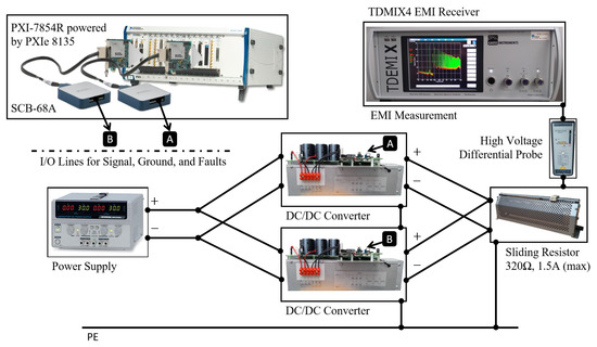 - Loschi, H.; Lezynski, P.; Smolenski, R.; Nascimento, D.; Sleszynski, W. FPGA-Based System for Electromagnetic Interference Evaluation in Random Modulated DC/DC Converters. Energies 2020, 13, 2389. [Google Scholar] [CrossRef]