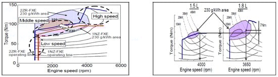 - Matsuo, S.; Ikeda, E.; Ito, Y.; Nishiura, H. The New Toyota Inline 4 Cylinder 1.8L ESTEC 2ZR-FXE Gasoline Engine for Hybrid Car. SAE Tech. Pap. 2016, 1, 0684. [Google Scholar] [CrossRef]