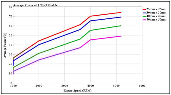 Average power generated by TEG at different engine speed (25 mm ×25 mm).