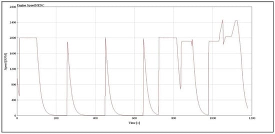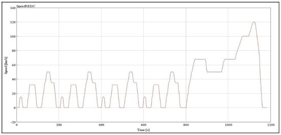To validate the HEV model, the BSFC used was the same as in Figure 3, which was obtained from the 4-cylinder engine model, and the fuel consumption was observed for two different drive cycles. The fuel consumption was then compared with the testing data of WLTP and NEDC data obtained from Toyota UK [] and provided in Table 2 below.