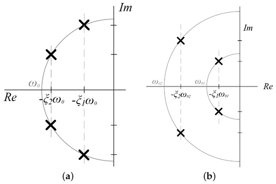 Note that, in any or subinterval, the time component associated with the pair of complex conjugate poles will be less damped exhibiting a low oscillating frequency, so that it will be practically constant during the decay of the highly underdamped term created by , whose zero-crossings will establish the change from to and vice versa.