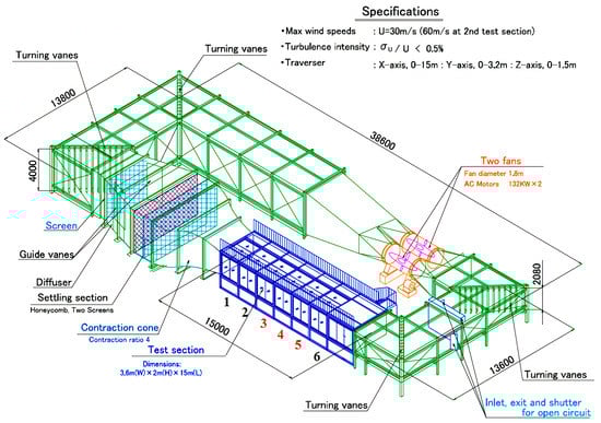 Appendix C). The boundary conditions of velocity at the other boundaries except for the inflow boundary surface were as shown below. Slip conditions were imposed on the upper- and lateral-boundary surfaces. No-slip conditions were applied on the ground, and convection-type outflow conditions were applied on the outflow boundary surface. Boundary conditions for pressure were Neumann conditions on all boundary surfaces. Other conditions were the same as those in the calculation in