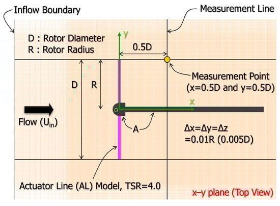27] based on the Cartesian staggered grid. In this study, we adopted the AL model for the rotation of wind-turbine blades as a method in which numerical simulations for multiple wind-turbines are relatively easy.