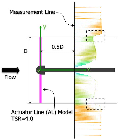 Figure 14a (the mid-span plane and at the top-tip height). The current paper imposes inflow condition with no turbulent fluctuations. Therefore, at x = 0.5 D in the near-wake region shown in