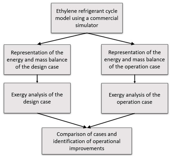 The exergetic evaluation of both scenarios requires two different sets of mass and energy balance and the comparison of results obtained assists the identification of process improvements. Figure 3 presents a flowchart with the proposed methodological approach.