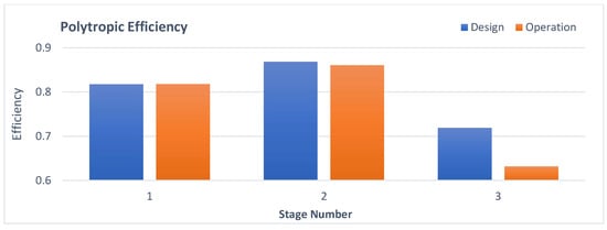 Performance curves were used to determine the compressor performance for the design case. This allows the polytropic head and polytropic efficiency to be directly obtained by the curves and applied to Equation (5), making it unnecessary to use Equations (2)–(4) to calculate the compressor power.