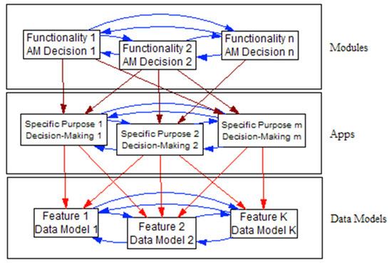 - In the first level, the M number of modules can be found, each one referring to different domains within asset management. These modules are inter-dependent, in fact, their interrelation can be crucial. Examples of modules are: Reliability module, health module, strategy module, etc.