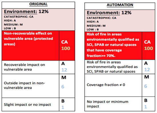 At the same time, the “fault location” functionality can be used by a dispatch center to provide information about the potential number of affected clients when a failure occurs at a specific point in the network. Failure severity data (factors, their weights and scores of the failures for effects on these factors) is normally placed in companies’ custom-made Apps for that purpose [27]. Thanks to these possibilities, the assessment of the potential impact of a functional location failure can be done using automated rules according to the functional location GIS data. For instance, see in Figure 13 how a functional location failure impact on “Environment” can be derived automatically from GIS data.