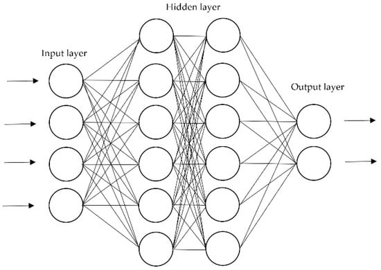 ANNs, as one of the most commonly used methods for wind power prediction, can identify the non-linear relationships between input features and output data [22]. One of the reasons for the tendency to use neural networks is to avoid the complexity of the mechanical structure in wind turbines [23]. Typically, an ANN model consists of an input layer, one or more hidden layers [11], and an output layer, where the historical data/features are fed for training and testing (see Figure 1). It also consists of processing units called neurons, which are connected with certain weighted connections. The ANN adjusts the weight of these interconnections through the training process. If the desired output is known at the beginning of the process, it will be named supervised; contrarily, it will be called unsupervised [24]. Figure 1 shows a typical structure of an ANN model.