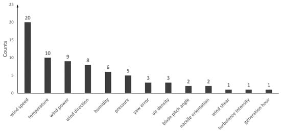 Lin et al. [36] implemented isolation forest (IF) along with deep learning neural network to detect outliers for more accurate wind power forecasting. Wind speed, wind direction, air temperature, etc., were extracted from a supervisory control and data acquisition (SCADA) dataset of an offshore wind turbine to be used as inputs while employing wind power as the output in the predictive model. Comparison results showed that IF is a more effective way of providing accurate forecasting, especially when the investigated data do not follow the normal distribution. In another paper [23], the authors critically evaluated eleven features from a 7 MW wind turbine in Scotland, including four wind speeds at different heights, average blade pitch angle, three measured pitch angles for three blades, ambient temperature, yaw error and nacelle orientation. The results revealed that the blade pitch angle had the greatest effect on the performance of the prediction model, even more than wind speed and wind shear. On the contrary, wind direction and air density contributed the least significance, which allowed their elimination for reducing computational time.