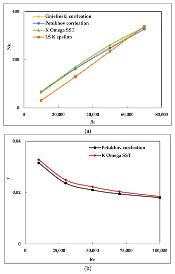 These empirical correlations of number and friction factor are used in the current study to validate the numerical predications.