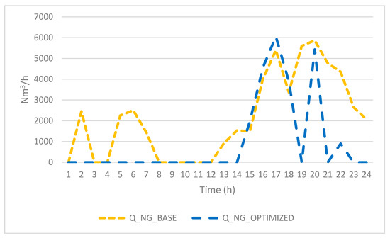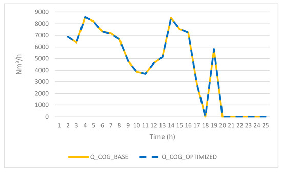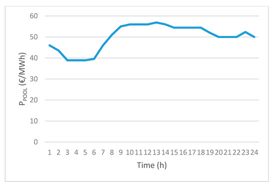 The planning period spans one day with real data from the operation in SGCP. The time step length of 1 h corresponds to the actual measuring period used in the process. The thermal energy required by the steel process must be supplied by the cogeneration plant in a continuous, safe, and reliable way. For electric energy, the objective is to maximize energy sales based on the hourly price of the electricity market. In Spain, this price is known the day before as a consequence of crossing the energy supply and demand curve forecasting. The electricity spot market defines the prices for every hour of the following day. For this reason, the correct management and optimization of gas flows is essential to ensure the fewest repercussions for the performance of the thermal plant.