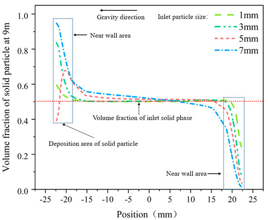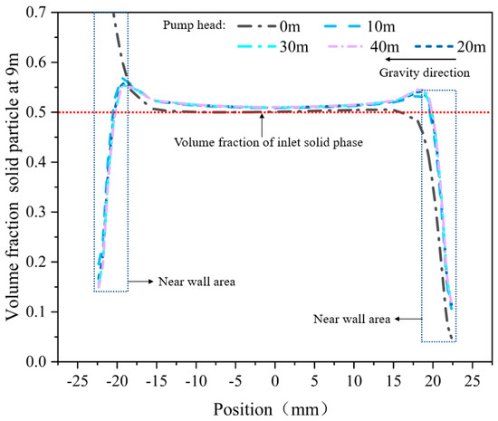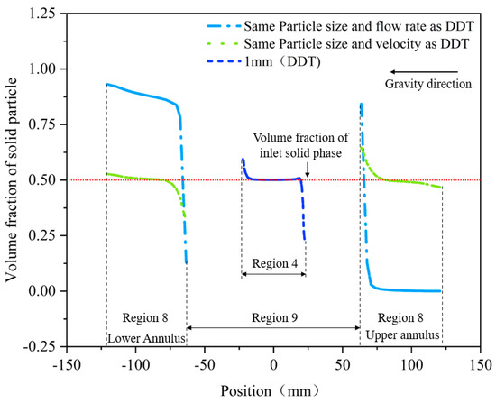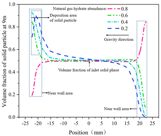 From Figure 8, Figure 9, Figure 10 and Figure 11, the migration law of the multiphase mixed slurry of sediment and NGH in the horizontal section of DDG method is analyzed. This study mainly analyses the influence of inlet flow, particle size, volume fraction of the solid particles and head of the lift pump on the migration process of the multiphase mixed slurry of sediment and NGH in the horizontal section.