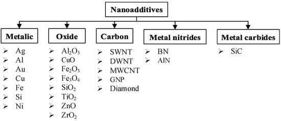 - Munkhbayar, B.; Tanshen, M.R.; Jeoun, J.; Chung, H.; Jeong, H. Surfactant-free dispersion of silver nanoparticles into MWCNT-aqueous nanofluids prepared by one-step technique and their thermal characteristics. Ceram. Int. 2013, 39, 6415–6425. [Google Scholar] [CrossRef]