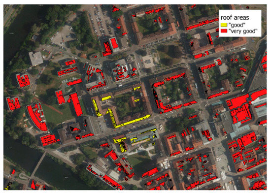 Example of suitable roof areas, including the classification “very good” and “good” based on data from the solar roof register [15].