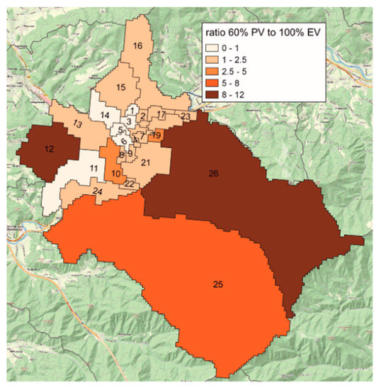 In the scenarios presented here, the same penetration of EV and PV is considered for all cells, therefore in some cells large differences between PV production and the power requirements of e-mobility occur. For further reduction or possibly complete avoidance of overloads, it is necessary to find the optimal balance between PV production and the power requirements of e-mobility for each cell.