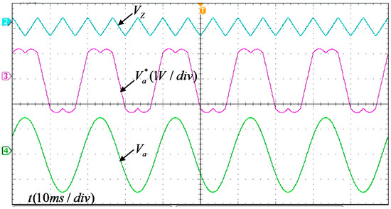 In Figure 12, VZ represents the zero-sequence component required to achieve the equivalent of MCBPWM and VSVPWM. It can be seen that the zero-sequence component VZ is superimposed on the A-phase sinusoidal modulation wave, and the same modulation wave Va* as the double modulation wave MCBPWM can be obtained. This proves the correctness of the modulation wave decomposition.