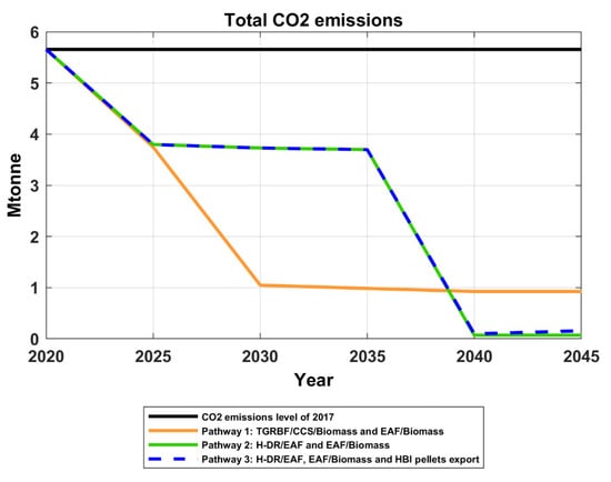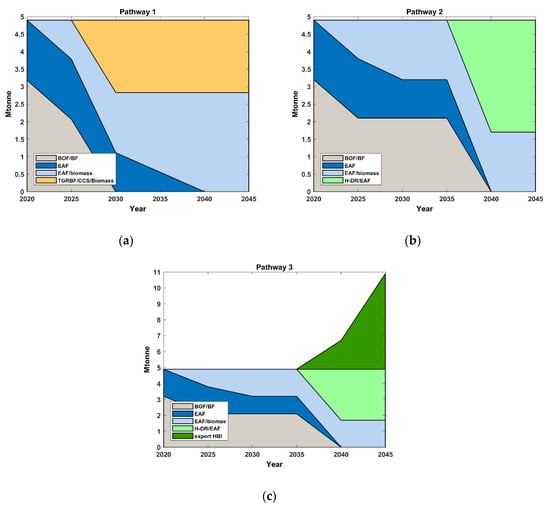 | Pathway 3 | H-DR/EAF | 2040 | EAF/biomass | 2025 | Increased |