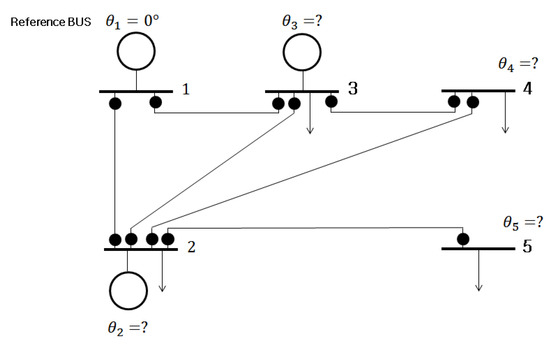 where and is a reference bus phase angle. The reference bus is normally excluded from the states and the corresponding column does not exist in matrix . Here is invertible, and it can estimate the phase angles in the power grid. Now, matrix becomes