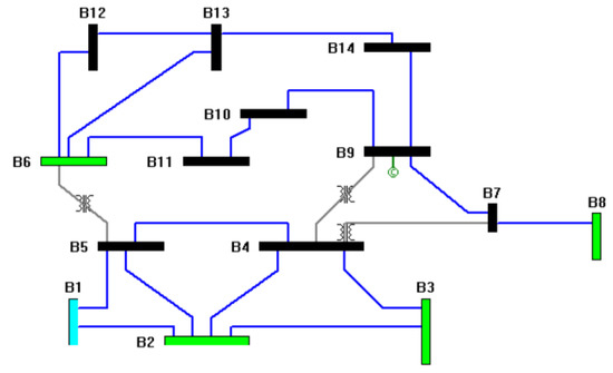 The placement of secure PMUs by the proposed method was considered. Figure 3 shows the IEEE 14-bus system. The IEEE 14-bus system consists of 14 buses, 20 branches and 5 generators with reference bus B1.