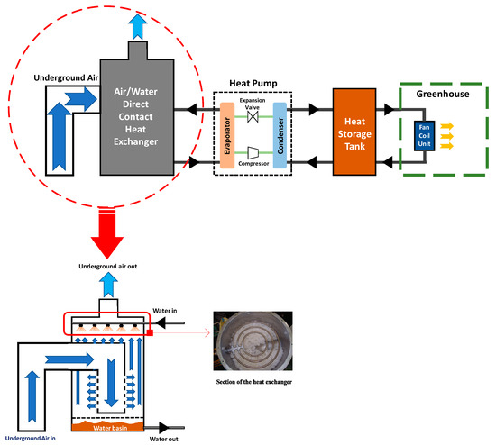Heating Performance Analysis of an Air-to-Water Heat Pump Using Underground Air for Greenhouse Farming