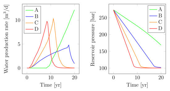 In the case of the exploitation of a hydrocarbon reservoir, the most common objective functions are: cumulative oil production, NPV, and production plateau time. Almeida et al. [25] incorporated ICV (inflow control valve) optimization in a smart well to establish a configuration that promoted increasing the NPV project value by delaying water breakthrough. They utilized GA as the optimization core. Awotunde et al. [26] developed an optimization workflow to optimal well placement based on a multiobjective cost function combining NPV with the voidage replacement ratio. The authors evaluated two optimization algorithms: the covariance matrix adaptation evolutionary strategy (CMA-ES) and differential evolution (DE). Bellout [27] evaluated the sequential and joint optimization of well the placement-control problem. The solution quality was evaluated based on the project net present value. As a result of the joint optimization procedure, the project NPV could be up to 20% when compared to a sequential approach. The project profitability as an objective indicator can be combined with the recovery ratio. Brouwer [28] used optimal control theory as an optimization algorithm for the valve settings in smart wells. According to the well control procedure, the application of ICV can significantly reduce water production or accelerate oil production, which have a direct impact on economic assets. Doublet et al. [29] utilized smart well technology in an injection–production horizontal well doublet. The proposed solution finds the optimal injection and production rates for every well segment. The optimization was carried out to maximize the project NPV value. The major outcome of the optimization procedure was a meaningful increase in oil production plateau time. NPV was also used in a derivative-free approach. Forouzanfar and Reynolds [30] established a novel well placement algorithm to maximize the life-cycle net present value of the production from a reservoir. Each well was characterized by a six degree of freedom function. That solution provided better feasibility and ensured a smooth response of the objective function, reducing the risk of local extreme aggregation. Besides the direct application of the optimization routine, the response surface can play a significant role in the decision-making process. Gross’s [31] solution used simulation input uncertainties directly in the decision algorithms by extending the existing probabilistic reservoir simulation tool. As a target, the increase in production plateau was set. Recently, an effort was made to establish procedures that can hold multiple, possibly conflicting, objectives and evaluate this in terms of project NPV. Isebor et al. [32] introduced the novel approach BiPSOMADS based on particle swarm optimization-mesh adaptive direct search. The procedure was evaluated in terms of generalized field development and well control problems.