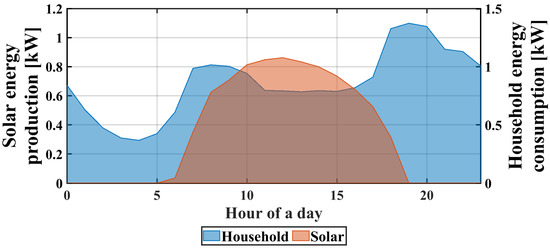Figure 4. Energy consumption and solar energy production throughout a typical weekday. - The generation of renewable energy technologies is based on hourly capacity factors. This is calculated considering the specific technical properties of each technology as well as hourly meteorological conditions.