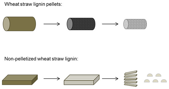 Simplified scheme of the conversion of pelletized and non-pelletized wheat straw lignin.