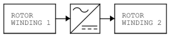 The basic idea is to exploit the input winding to receive energy form the counter-rotating field, as in contactless energy transmission. The Figure 1 shows the scheme of rotor winding connections. The electrical energy is rectified and supplied to the field winding in order to generate the torque.