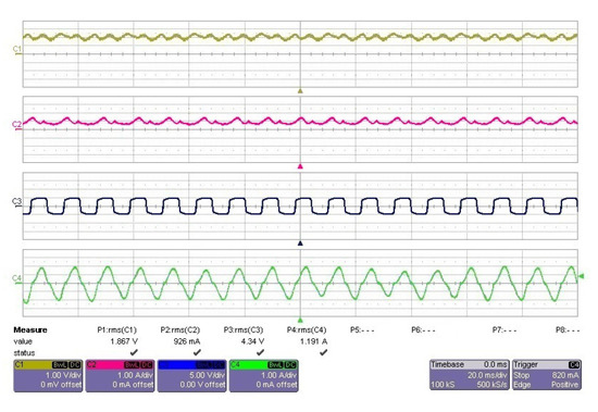 Figure 14 shows the scope measurements at inverse speed (i.e., 300 rpm), where: