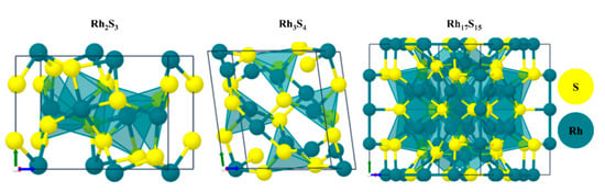 Crystal structures of Rh-S materials [] (license under by CC-BY 4.0).