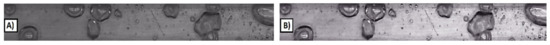 Picture of two-phase flow (A) before and (B) after the operations improving its quality.