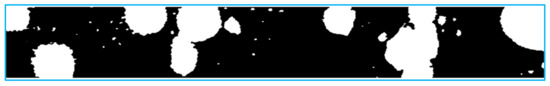 Subsequently the perfected and binarized void frames underwent the following operations: morphologic opening and closing the picture, median filtration from artefacts and morphologic filling of empty spaces in the observed objects—That is vapor bubbles. The application of the entire algorithm converted the image in Figure 8B into the black and white one, Figure 9.
