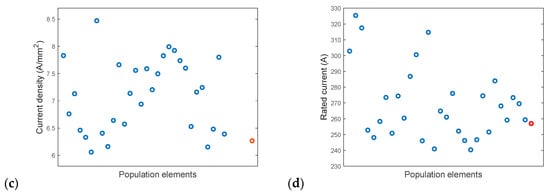 The decision to consider as random variables both the current density and the rated current of the machine comes from the necessity to find possible solutions which satisfy both the thermal problem and voltage limits: It is necessary to highlight that with respect to the voltage limits, in aerospace propulsion it could be quite difficult to satisfy due to the limited value of DC bus voltage (in our case it is considered the value of 270 V), mainly when the requested speed and power are high.