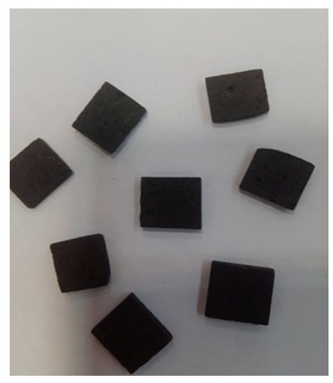 It is believed that carbonate rock generally has oil-wetting behavior which attributes to the oil aging effect. After the cleaning process, to simulate the real formation, the thin sections of core samples were placed in a beaker together with crude oil from the Ahwaz oil field in the oven at 80 °C under vacuum conditions for 48 h [10,11], to achieve initial oil saturation. After saturating the core samples with crude oil, the thin section was saturated with formation surfactant (dodecanoyl-glucosamine surfactant) for 24 h to reduce the wettability to more water-wet conditions. Figure 1 shows crude oil and thin sections of rock samples.