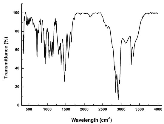 For the FT-IR spectrum (as shown in Figure 6), the absorption at 3347 cm−1 is allocated to the N–H stretching. The captivation band at 2941 cm−1 shows aliphatic hydrogen-bonding characteristics. The peak which appeared at 1617 cm−1 is a carbonyl peak in the amide group. The peaks which appeared at 1584 and 1538 cm−1 are depicted as N–H symmetric and asymmetric in-plane bending of amide groups. The peak which is shown at 1094 cm−1 is the stretching band of C–O and the peak depicted at 732 cm−1 is due to the N–H out-of-plane bending.